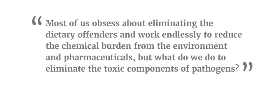 Since the gut epithelium is the most common point of entry from the outside world to the inside of our body, we focus a lot on gut health and restoring barrier function. However, have you ever tried to heal a tissue without removal of assault? It’s impossible. Healing a disc injury when the patient won’t stop repeating the offending movement, healing a scab when a child won’t stop picking it, healing the gut without removing offenders—these are examples of how difficult it is for complete healing to occur in a reasonable amount of time without addressing the cause. In the gut, there are three major assailants doing damage: gliadin (a protein found in wheat), chemicals, and pathogens and their toxins. Most of us obsess about eliminating the dietary offenders and work endlessly to reduce the chemical burden from the environment and pharmaceuticals, but what do we do to eliminate the toxic components of pathogens? After all, we are treating many patients for infections without regard to what happens when the pathogens disassemble and release their components and contents! Let’s talk about this third gut assailant: endotoxins.